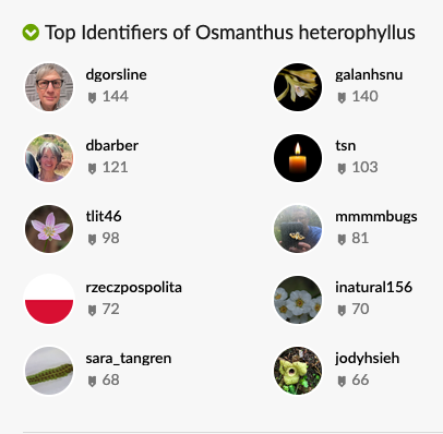 Look who’s at the top of the iNaturalist leaderboard of identifiers of Holly Olive (Osmanthus heterophyllus).1